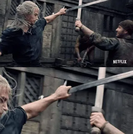 Вторая боёвка(где-то 1:00 трейлера) челы в латах один непонятный удар мечом в спину, 2 в шею/лицо, остальное не видно.
